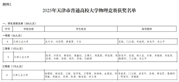 天津工业大学学子在2025年天津市普通高校大学物理竞赛中斩获佳绩