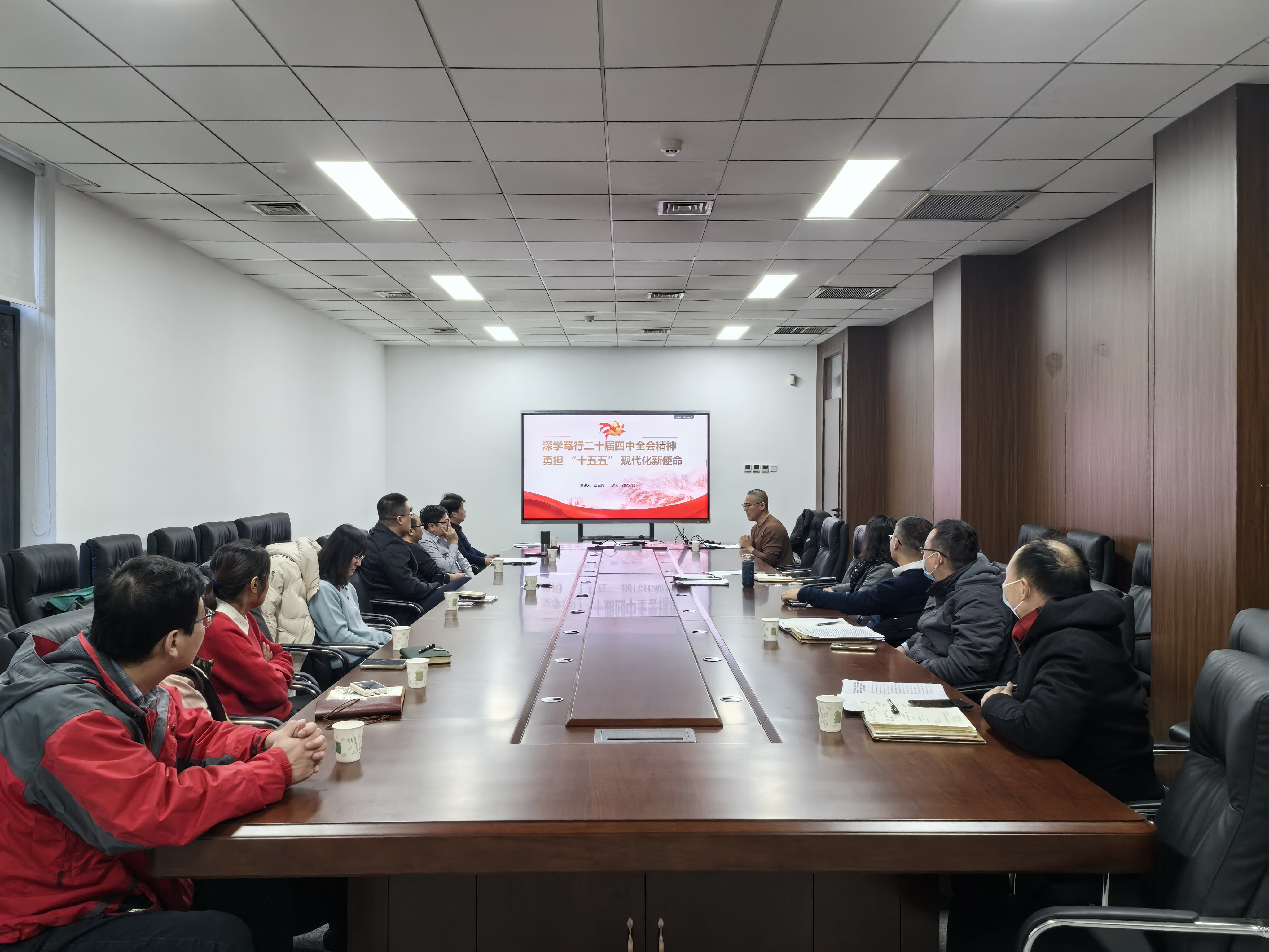 宣讲中,武老师紧扣全会精神核心要义,从“解码二十届四中全会的核心内涵”“总书记高度重视‘十五五’规划的深层逻辑”“‘十四五’时期的历史性成就与实践底气”“主流媒体重磅文章的核心信号解码”“二十届四中全会究竟擘画了怎样的未来蓝图?”五个部分系统解读了党的二十届四中全会的重大历史意义与实践要求。整场宣讲逻辑清晰、内涵丰富,既有理论高度又有实践温度,为学院精准对接“十五五”规划提供了有力指导。